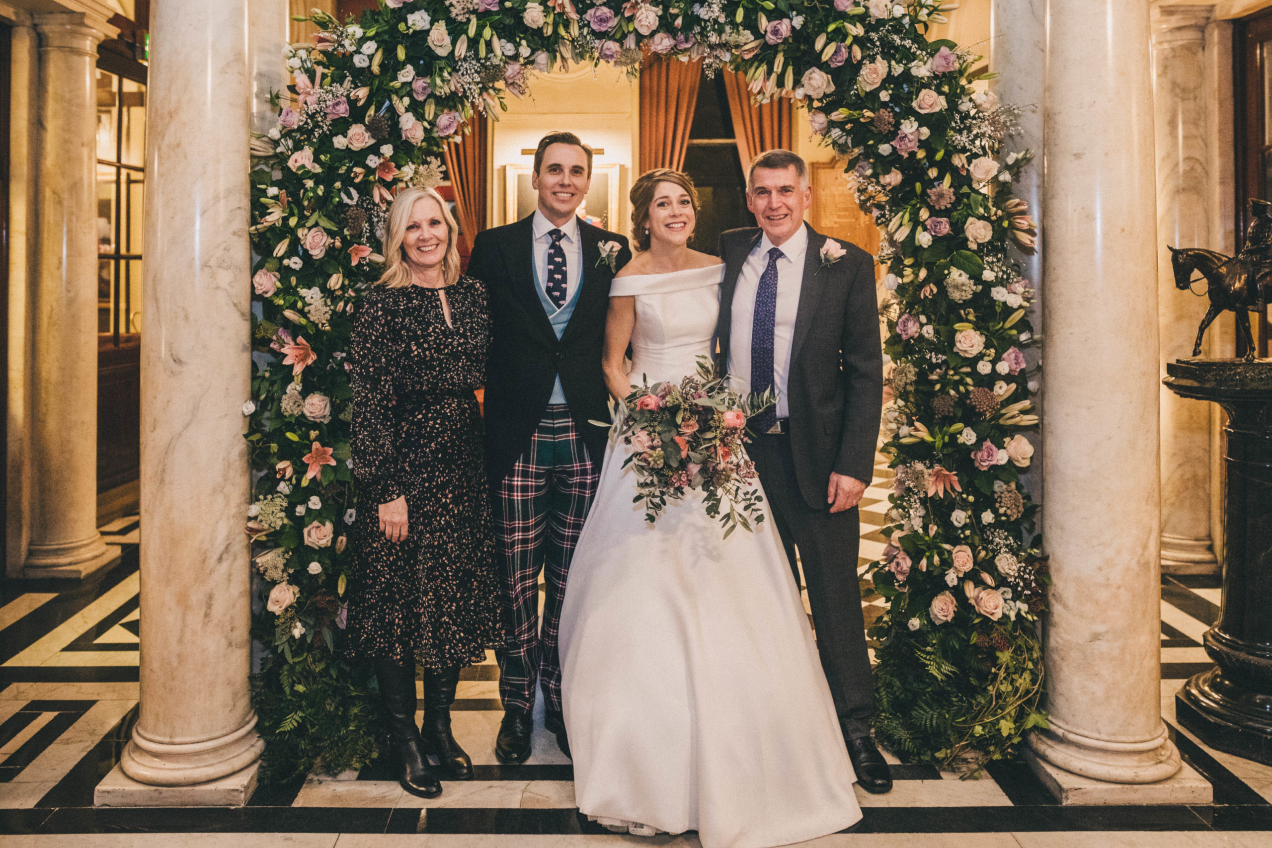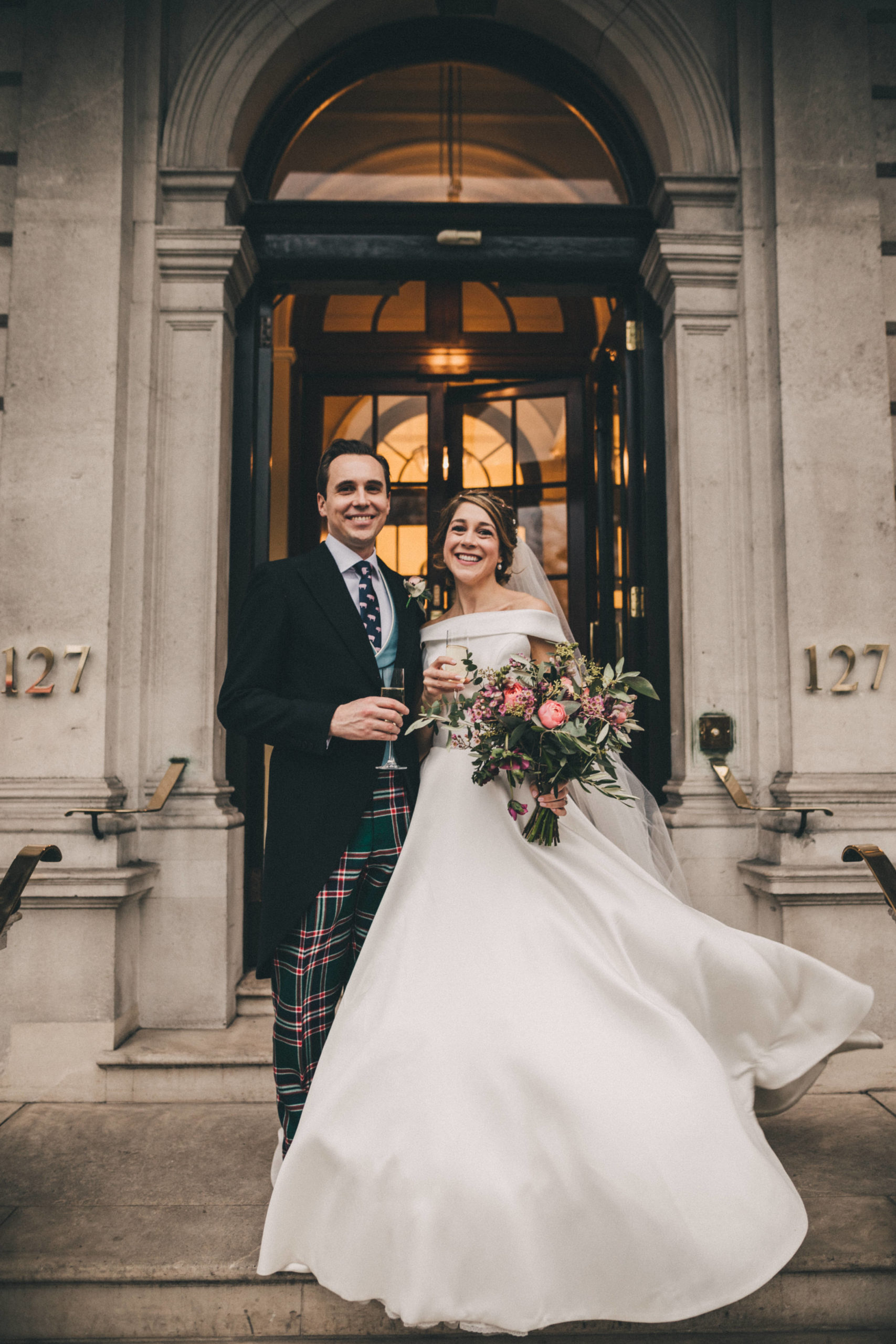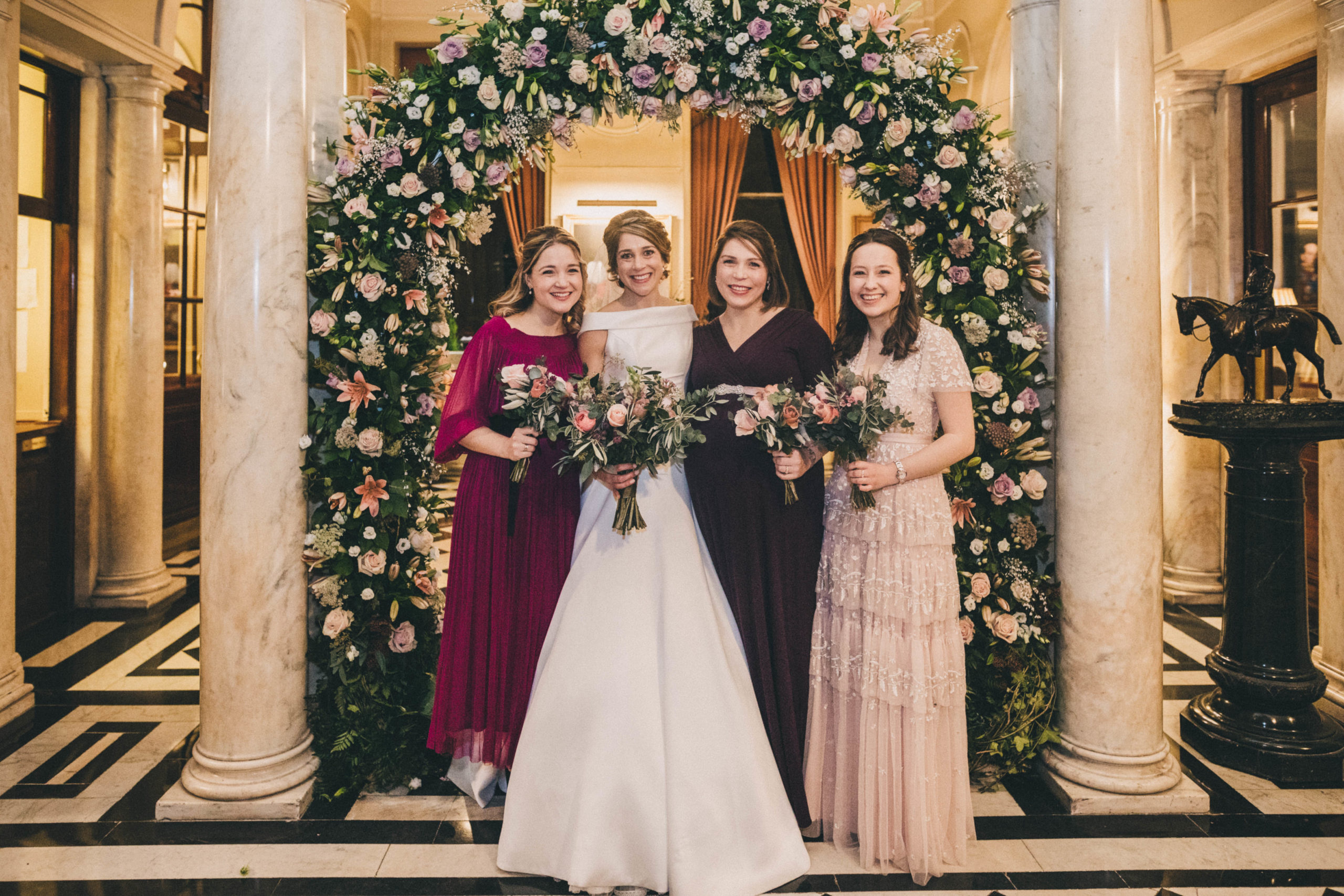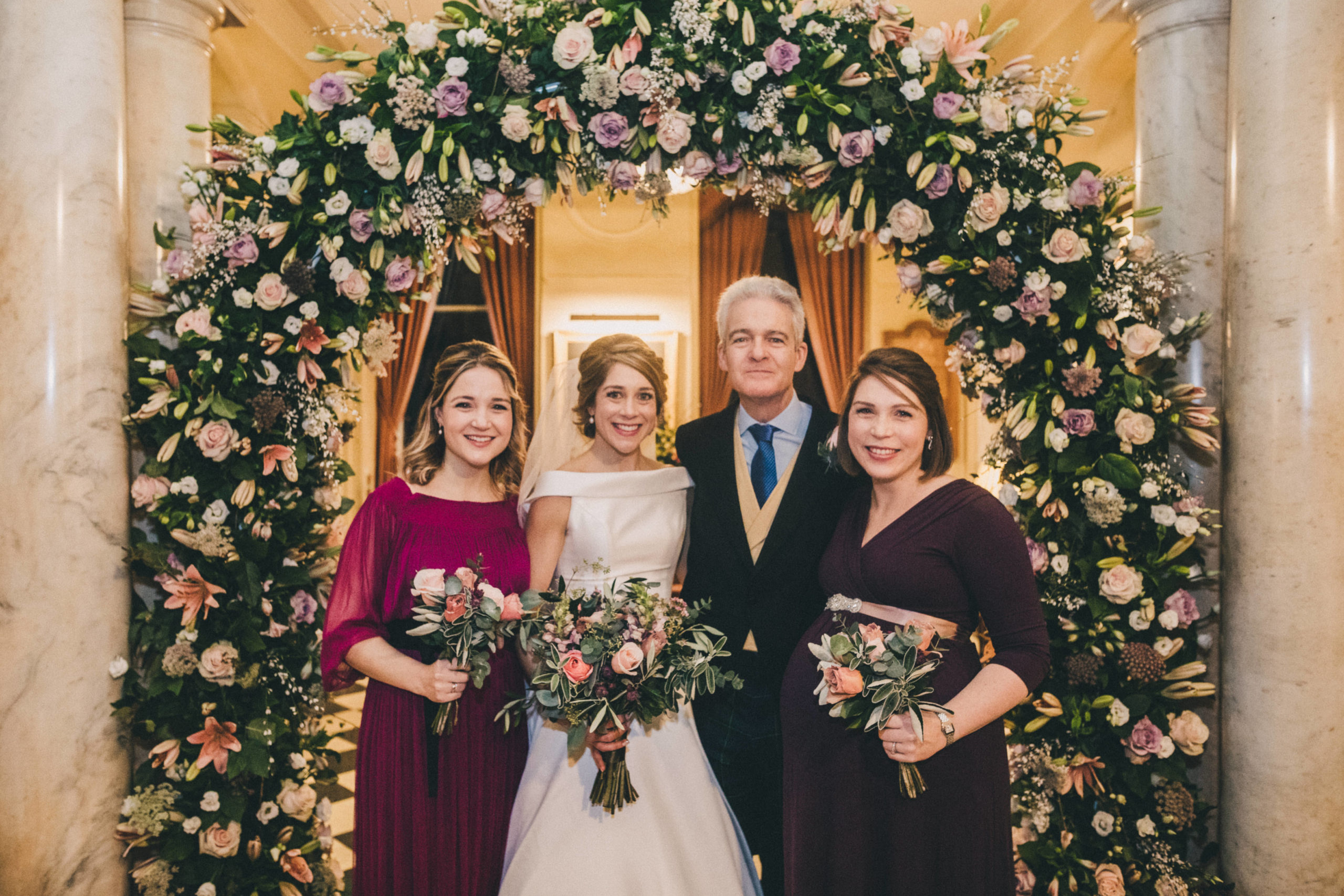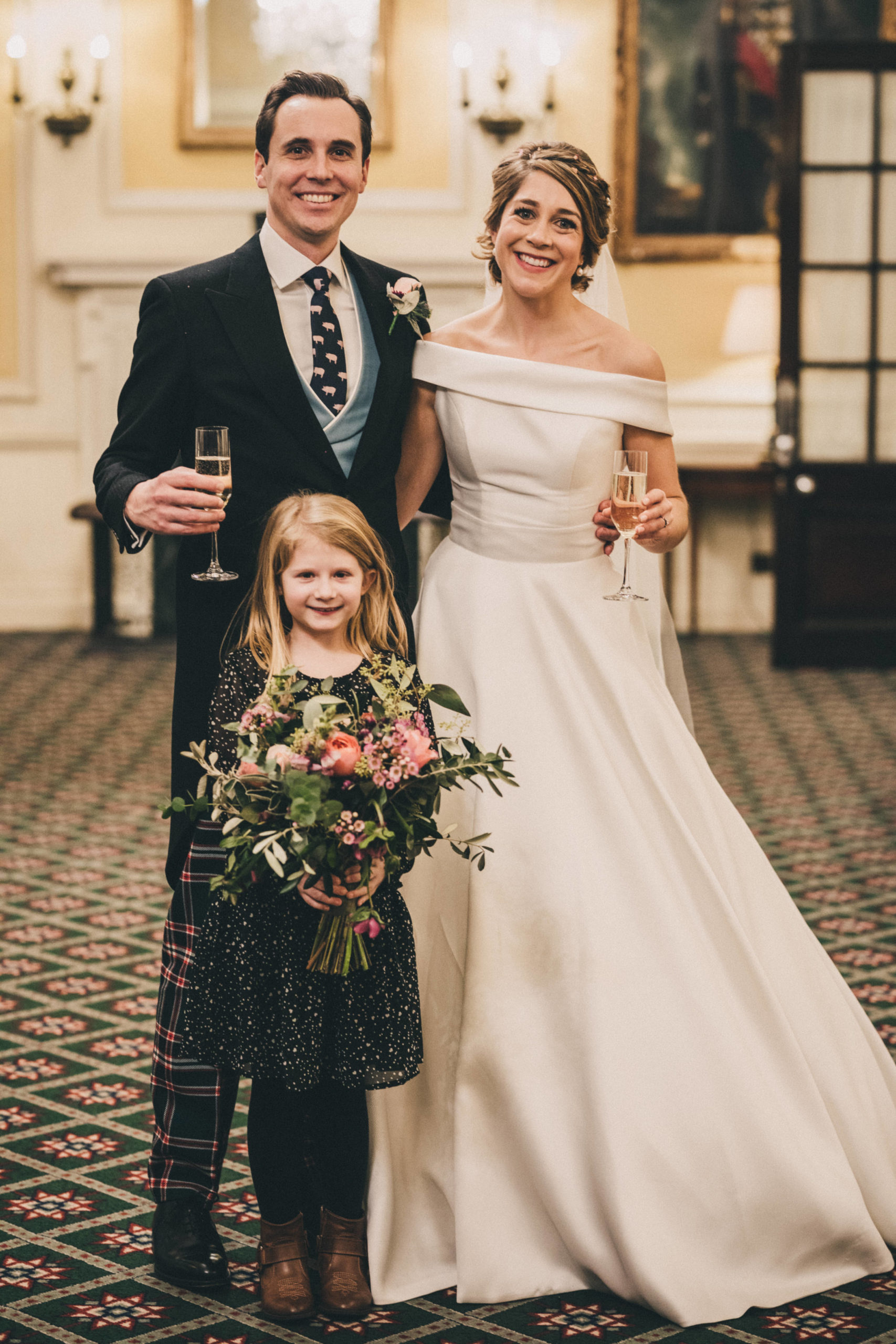 “I came to Joyce in July 2019 with a very fixed idea of how I wanted my dream dress to look after trawling around several dress shops. I met with Joyce who took me through to a dressing room and created the image I had described before my eyes out of spare pieces she had hanging around – I couldn’t believe how she could create my idea so apparently easily out of nothing. She then talked me through the fabrics, the process, the beading options and drew the design while we spoke. I was really nervous for the next month as we waited for the beading samples to be sent, but I had no need to have been. The final dress (a full skirt made from hammered silk with two tops for day and night) was so much more beautiful than I had envisaged even though I had initially been so certain about how it would look in the end. I cannot tell you how many comments, letters, emails, messages etc. I had solely about the dress – where it was from, what the material was, how it was made etc. I know a groom is never going to say anything other than that his bride looks beautiful, but mine cried when he saw me at the top of the aisle which was the only time he cried the whole day (he is not a crier) and he has not stopped saying since that it was simply the most perfect dress! So thank you for not only making my dreams come true but exceeding them. Joyce, Simona and Mary are brilliant professionals and also lovely people who left me leaving a fitting happier than when I arrived every single time. I will send as many brides your way as I can.” – Alice