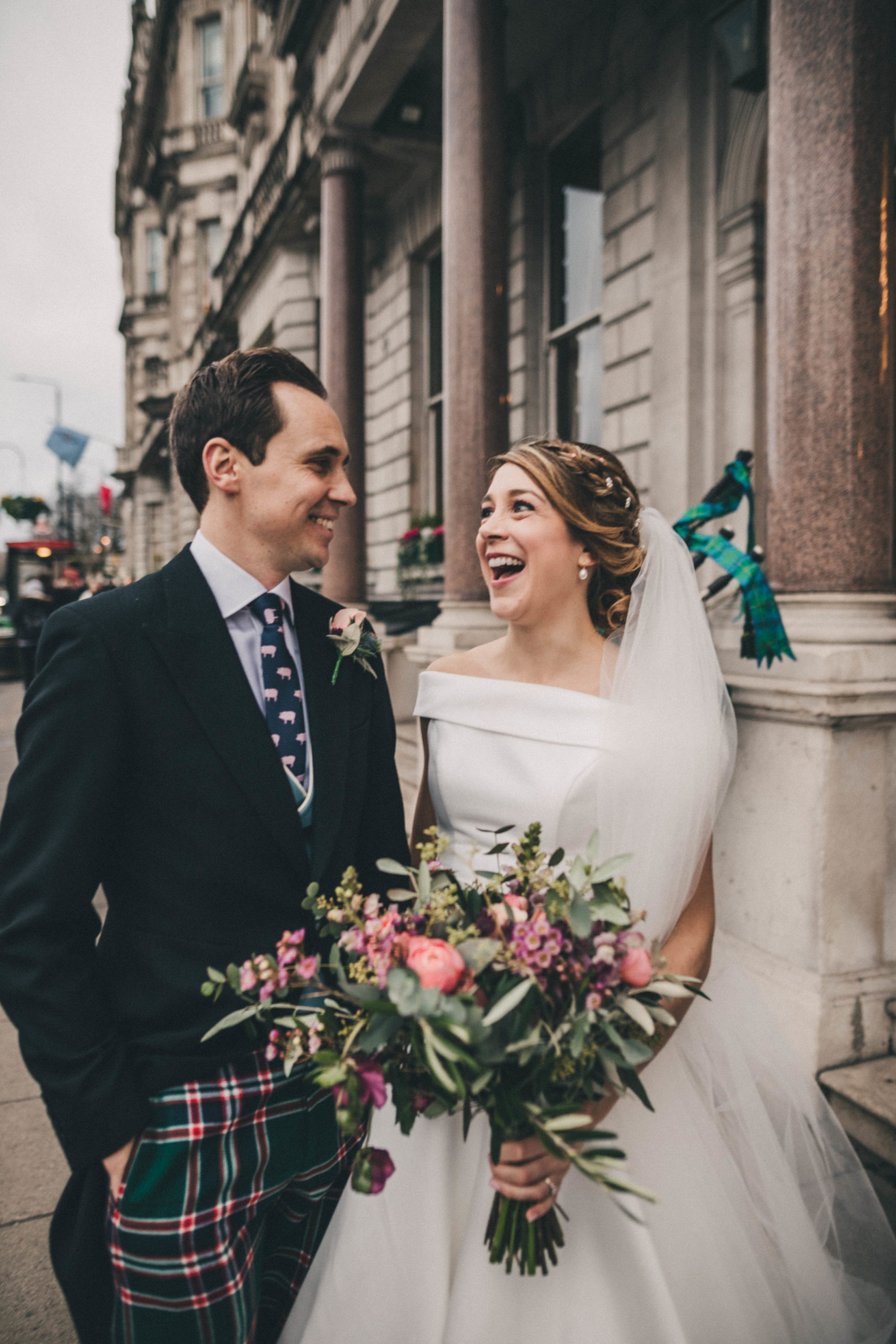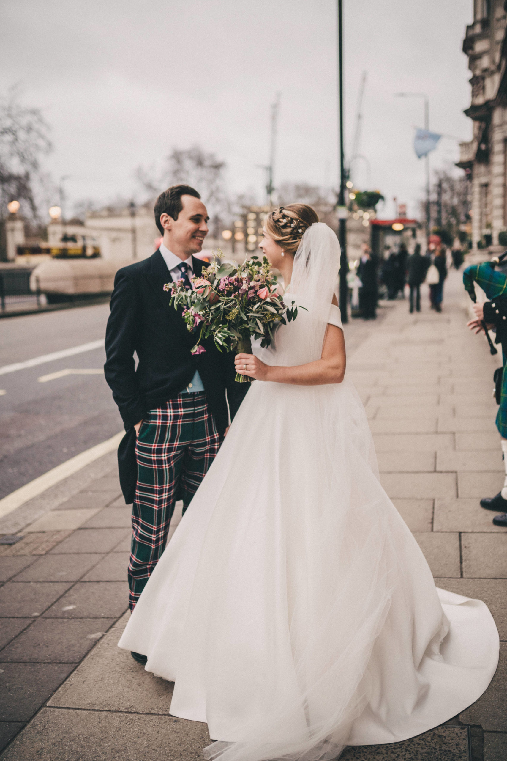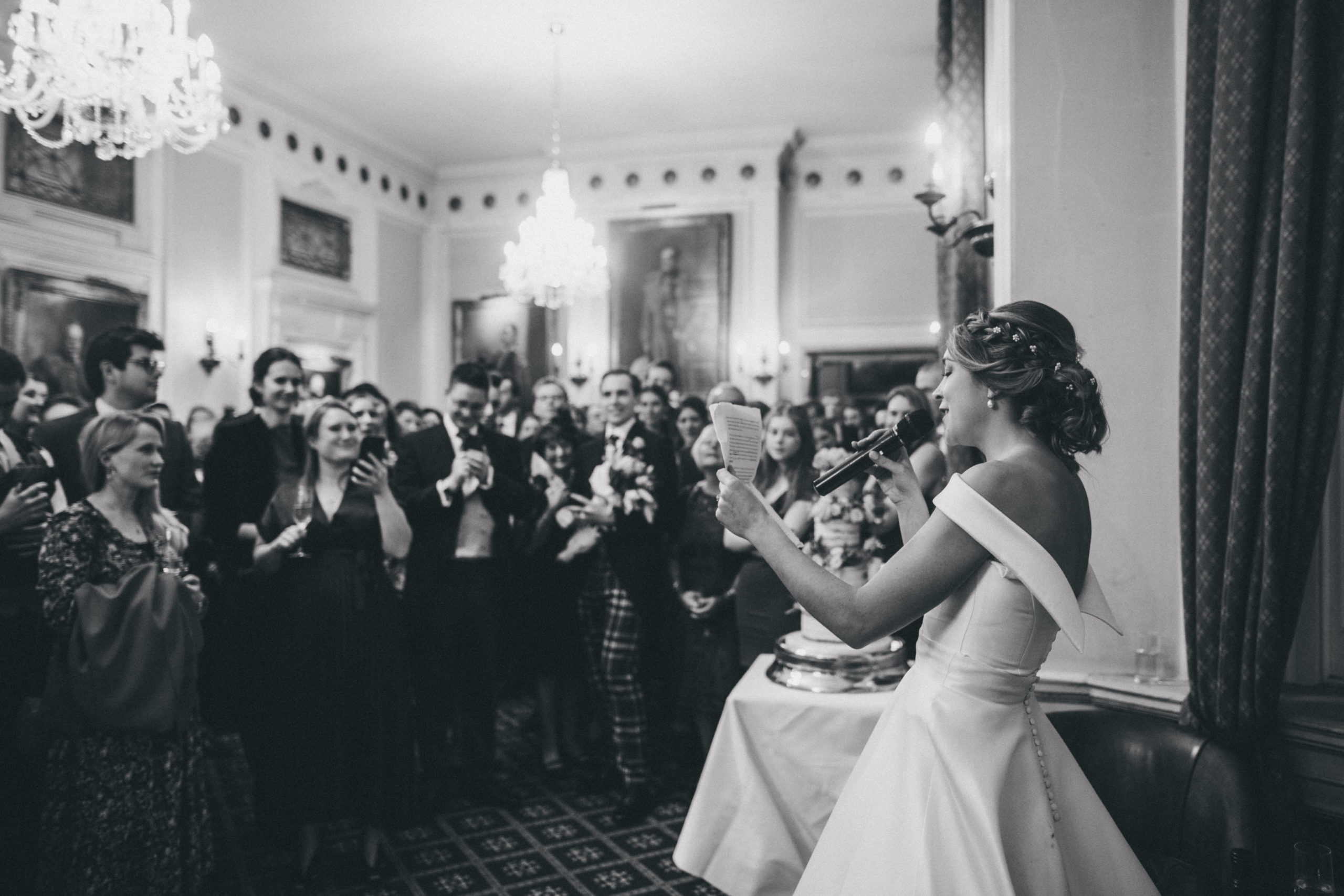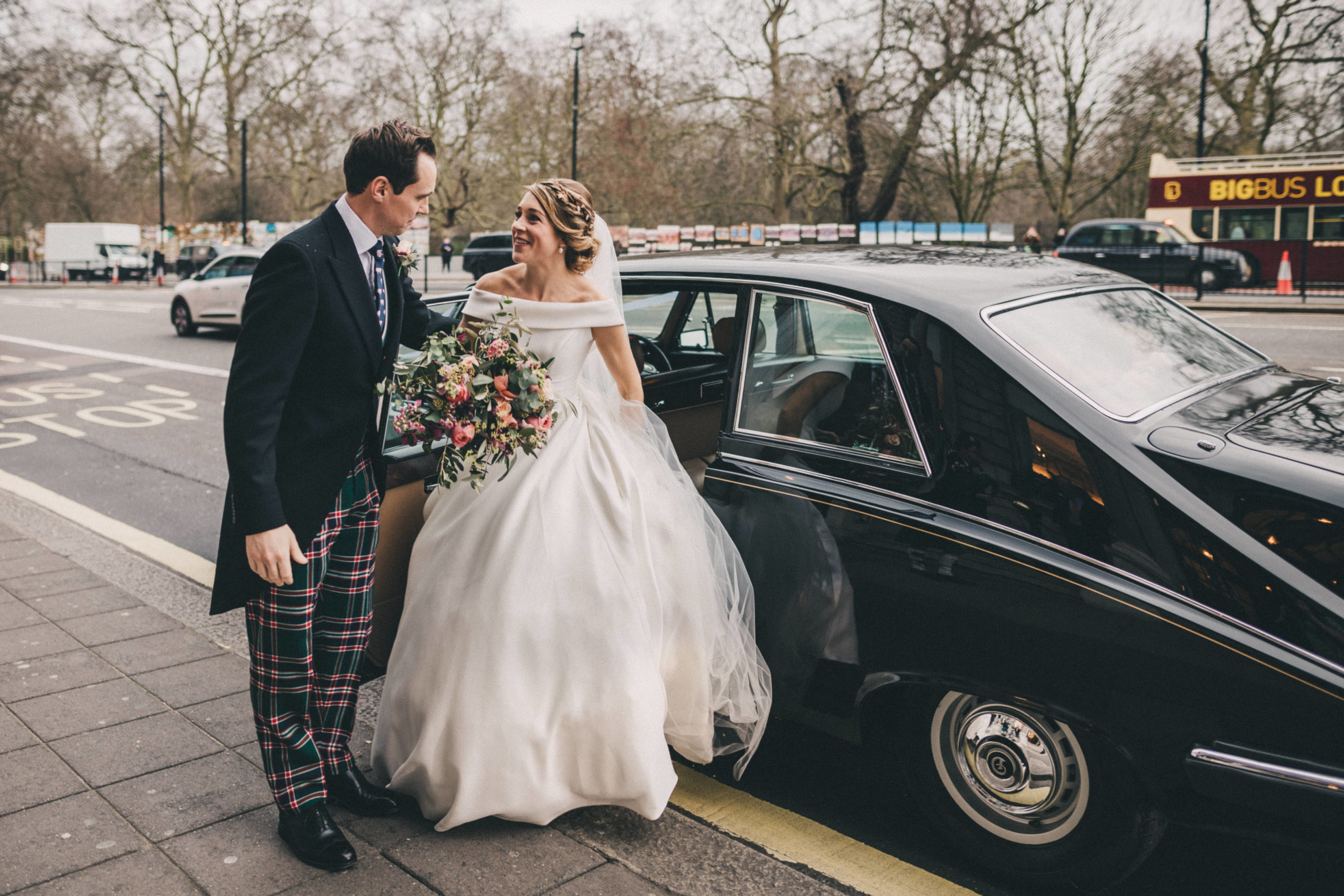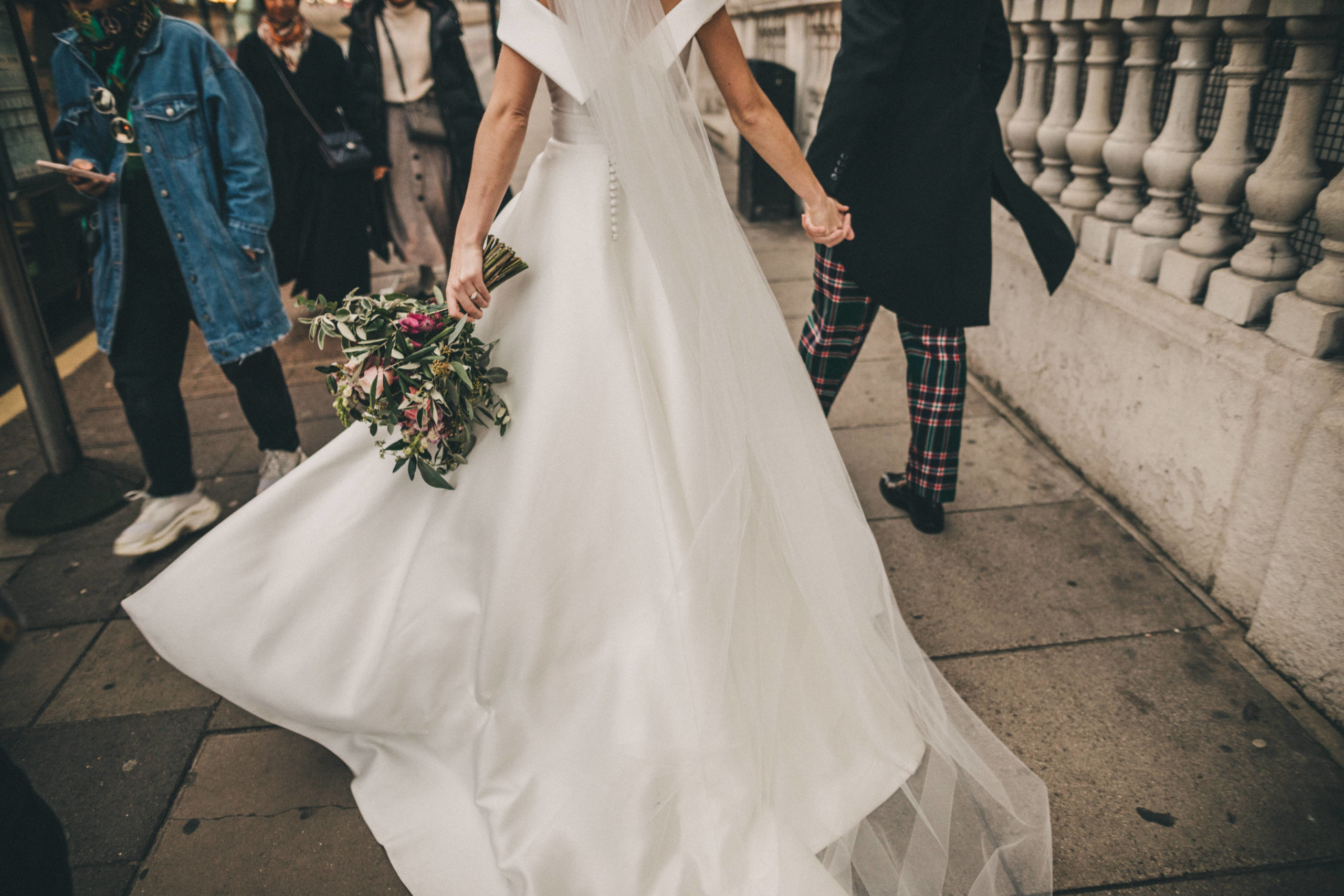“I came to Joyce in July 2019 with a very fixed idea of how I wanted my dream dress to look after trawling around several dress shops. I met with Joyce who took me through to a dressing room and created the image I had described before my eyes out of spare pieces she had hanging around – I couldn’t believe how she could create my idea so apparently easily out of nothing. She then talked me through the fabrics, the process, the beading options and drew the design while we spoke. I was really nervous for the next month as we waited for the beading samples to be sent, but I had no need to have been. The final dress (a full skirt made from hammered silk with two tops for day and night) was so much more beautiful than I had envisaged even though I had initially been so certain about how it would look in the end. I cannot tell you how many comments, letters, emails, messages etc. I had solely about the dress – where it was from, what the material was, how it was made etc. I know a groom is never going to say anything other than that his bride looks beautiful, but mine cried when he saw me at the top of the aisle which was the only time he cried the whole day (he is not a crier) and he has not stopped saying since that it was simply the most perfect dress! So thank you for not only making my dreams come true but exceeding them. Joyce, Simona and Mary are brilliant professionals and also lovely people who left me leaving a fitting happier than when I arrived every single time. I will send as many brides your way as I can.” – Alice